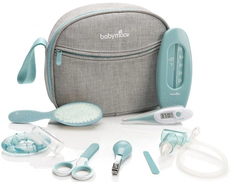 Deze mooie set van Babymoov bevat een digitale thermometer met flexibele tip, een neuspompje, een schaartje, nagelknipper, nagelvijl, badthermometer, zachte borstel, bijtring en een vingertandenborstel.