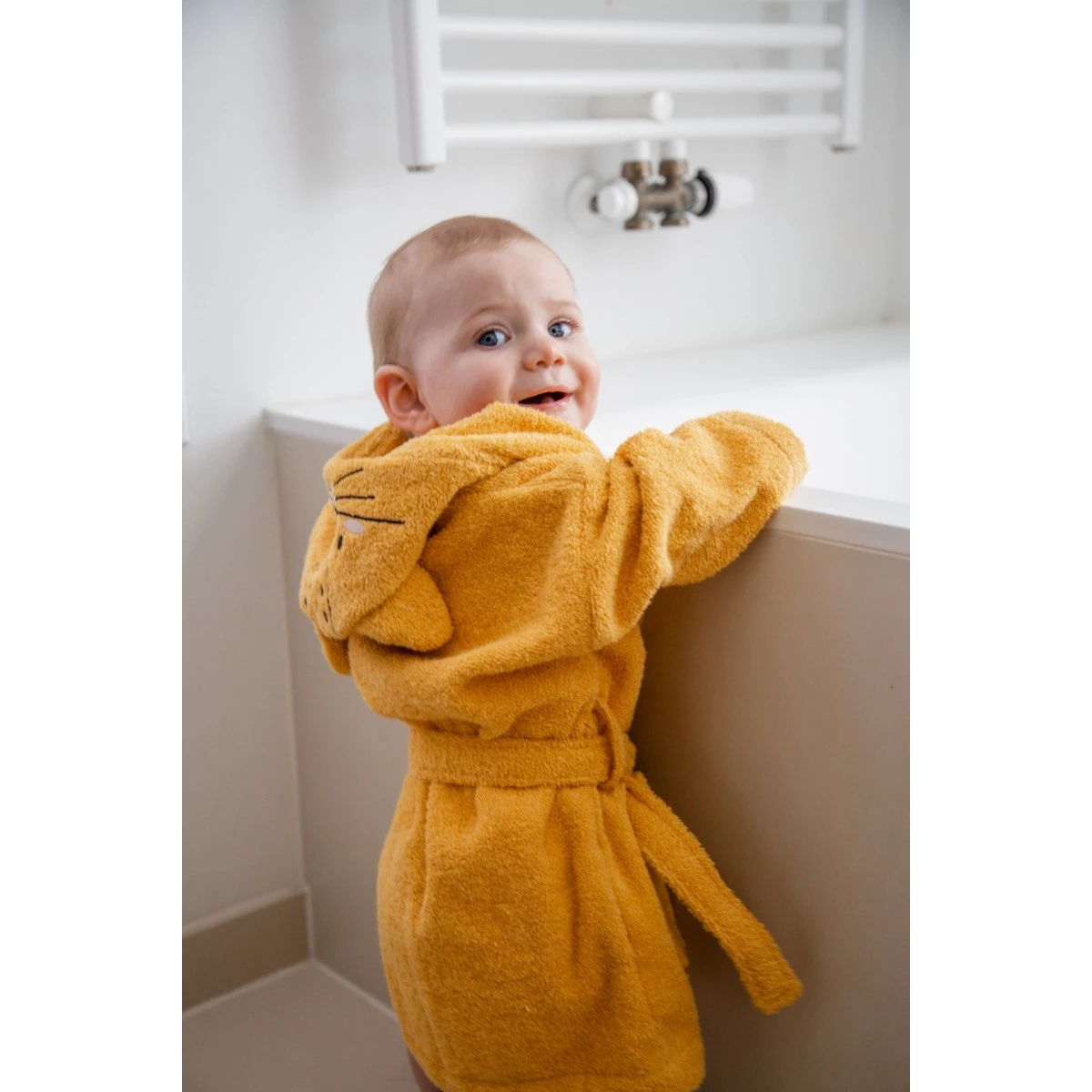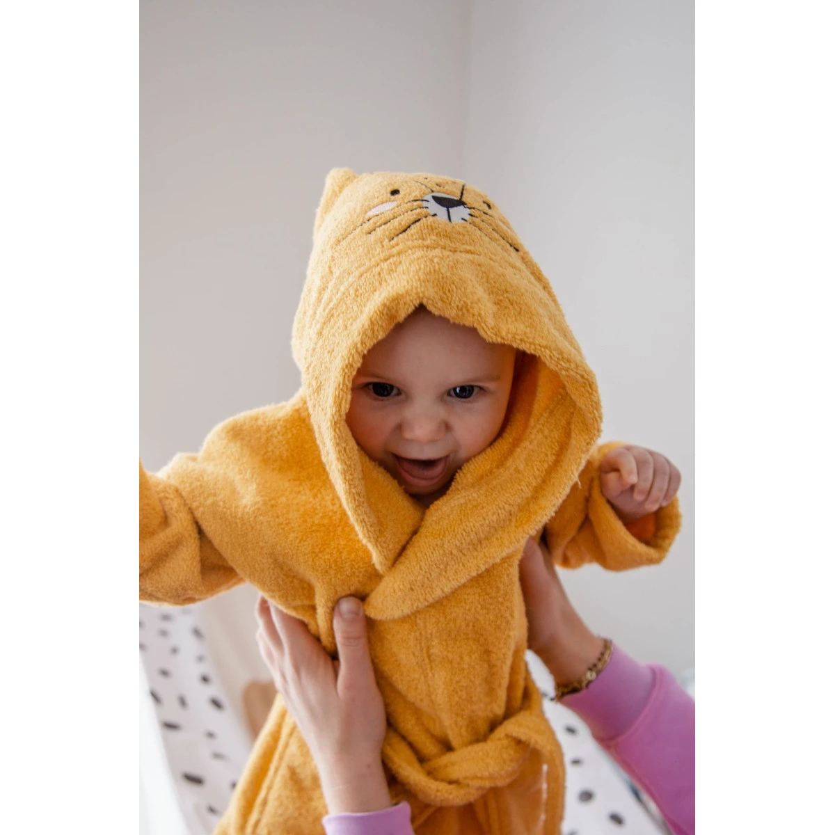 De badjas is extra leuk om aan te trekken want op de capuchon is een print van een luipaardje geborduurd! Zodra je kleine de capuchon op zet, zal hij/zij er dus uitzien als een echt luipaardje. De badjas heeft een riem die je zelf kunt knopen én twee zakjes.