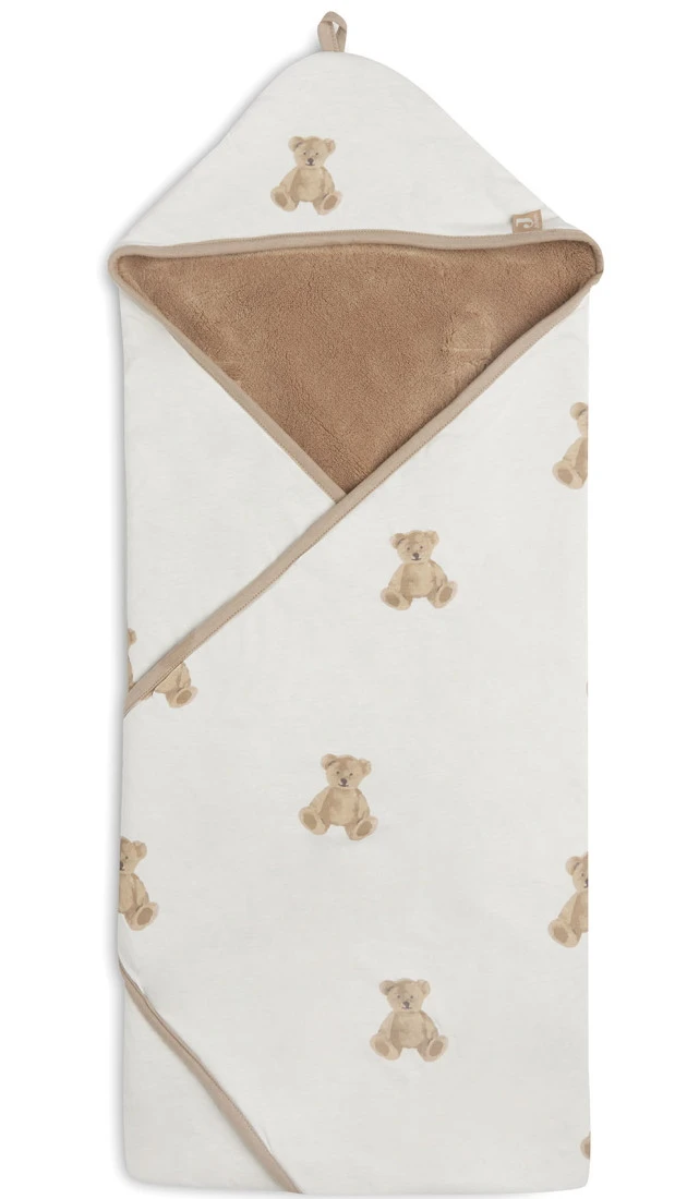 Je kleine zal heerlijk kunnen slapen in dit zachte dekentje met schattige teddy beertjes van Jollein! De wikkeldeken kan voor verschillende doeleinden gebruikt worden. Zo is het dekentje perfect voor in de buggy, autostoel of box, maar kan het ook als badcape gebruikt worden na een warm badje. Hij heeft openingen waarmee je hem kunt gebruiken in elk groep 0 autostoeltje met een drie of vijfpuntsgordel.Â