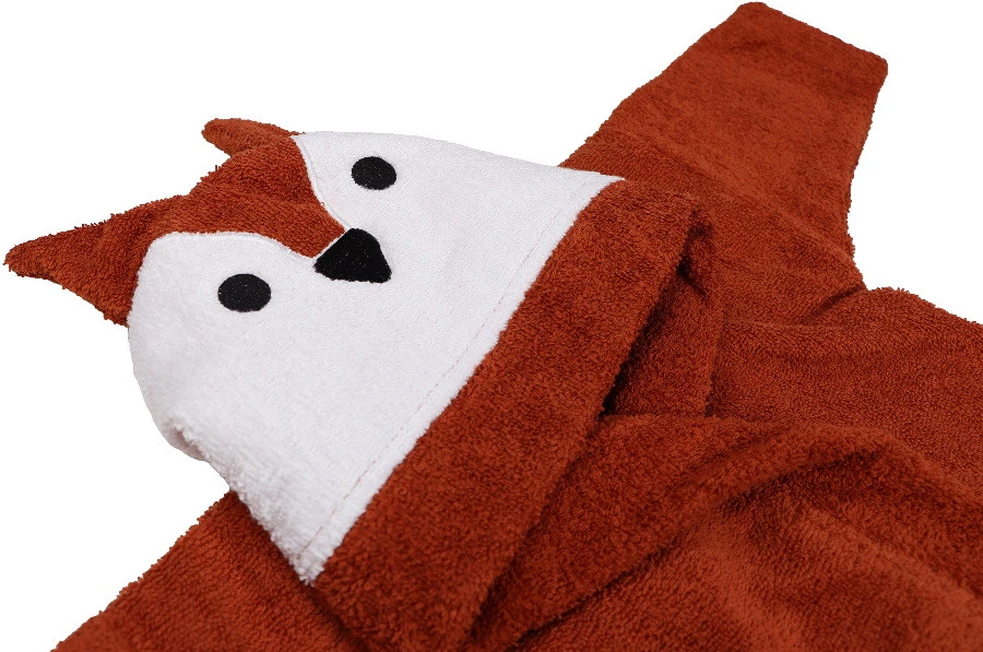 Deze badjas is extra leuk door het design van een vosje! De capuchon heeft namelijk oortjes en het gezichtje van een vos als printje. Zodra je kleine de capuchon opzet zal hij/zij er dus uitzien als een echte vos. De riem van het badjas kan je zelf knopen.