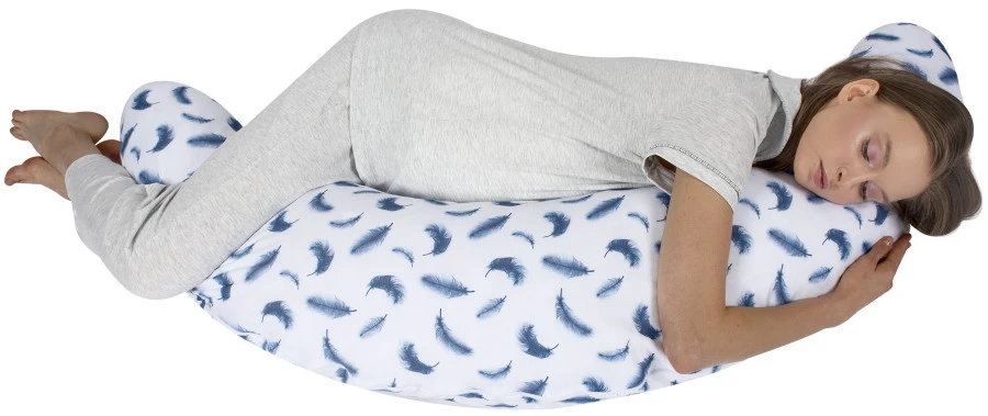 Het voedingskussen is voorzien van een hoes die gemaakt is van 100% katoen. Om ervoor te zorgen dat het voedingskussen rond blijft staan als je kleine er op zit of tijdens het voeden zit er een knoop aan het einde van het voedingskussen. De lengte van dit voedingskussen is 195 cm. De diameter van dit voedingskussen is 35 cm.